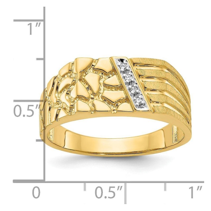 Anello da uomo con pepita di diamanti lucidati 10k - Misura 10,00 - 4,6 grammi, peso del diamante 0,03 carati in oro giallo 10k - - Scatola portagioielli pronta per il regalo inclusa - Finitura: lucida - ::: ::: [Cura e gestione: diamante] - Pulire con acqua calda e sapone e una spazzola morbida o un panno. :::